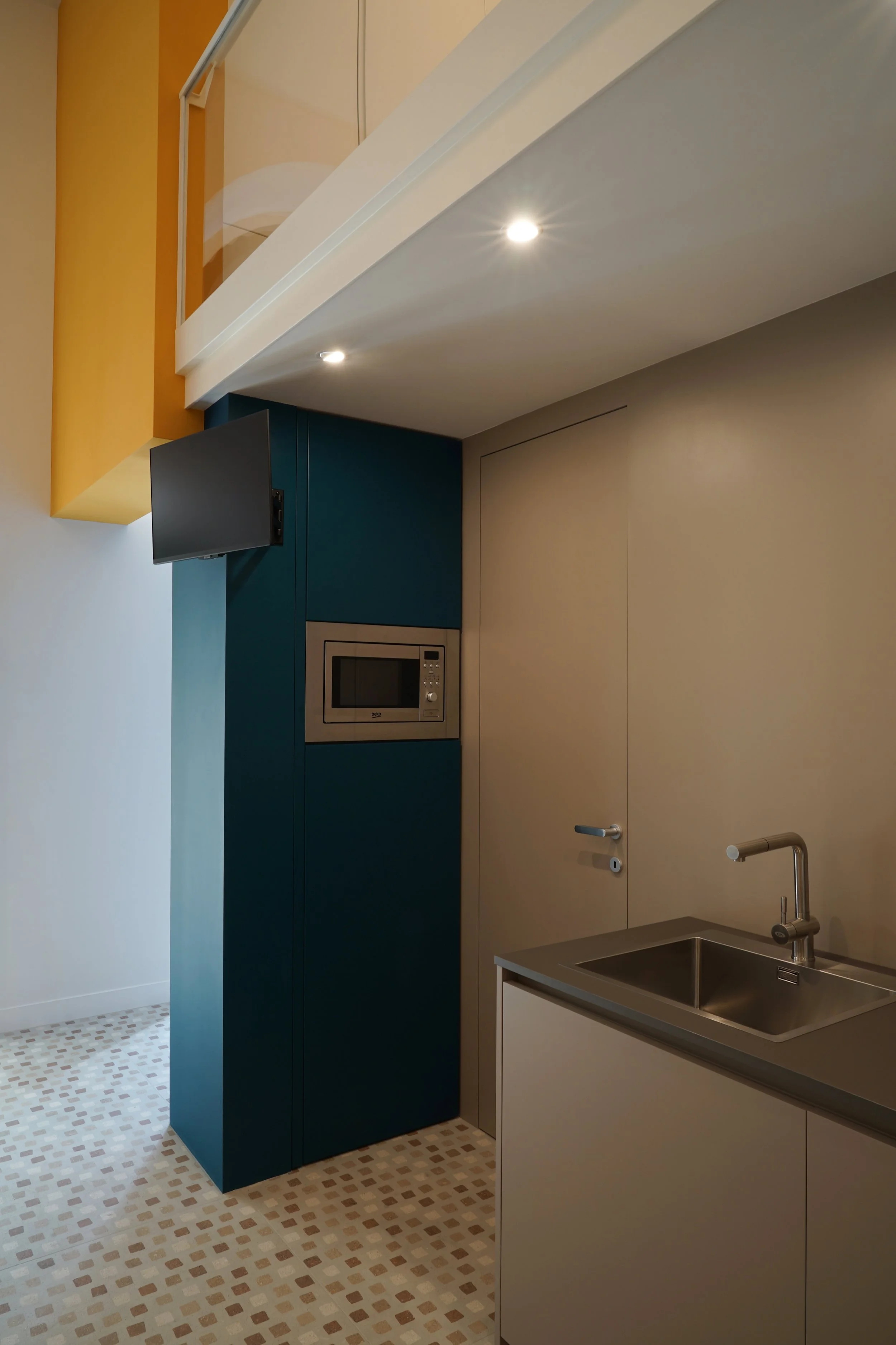 Così, grazie alle sue dotazioni, attrezzature impiantistiche, sistemi di stoccaggio a scomparsa, elettrodomestici integrati, controllati attraverso un minuto disegno dei dettagli, i 28 m² di quel quadrato al piano terra possono non solo essere utilizzati per ospitalità brevi, ma offrire un’abitazione confortevole anche per lunghi periodi.