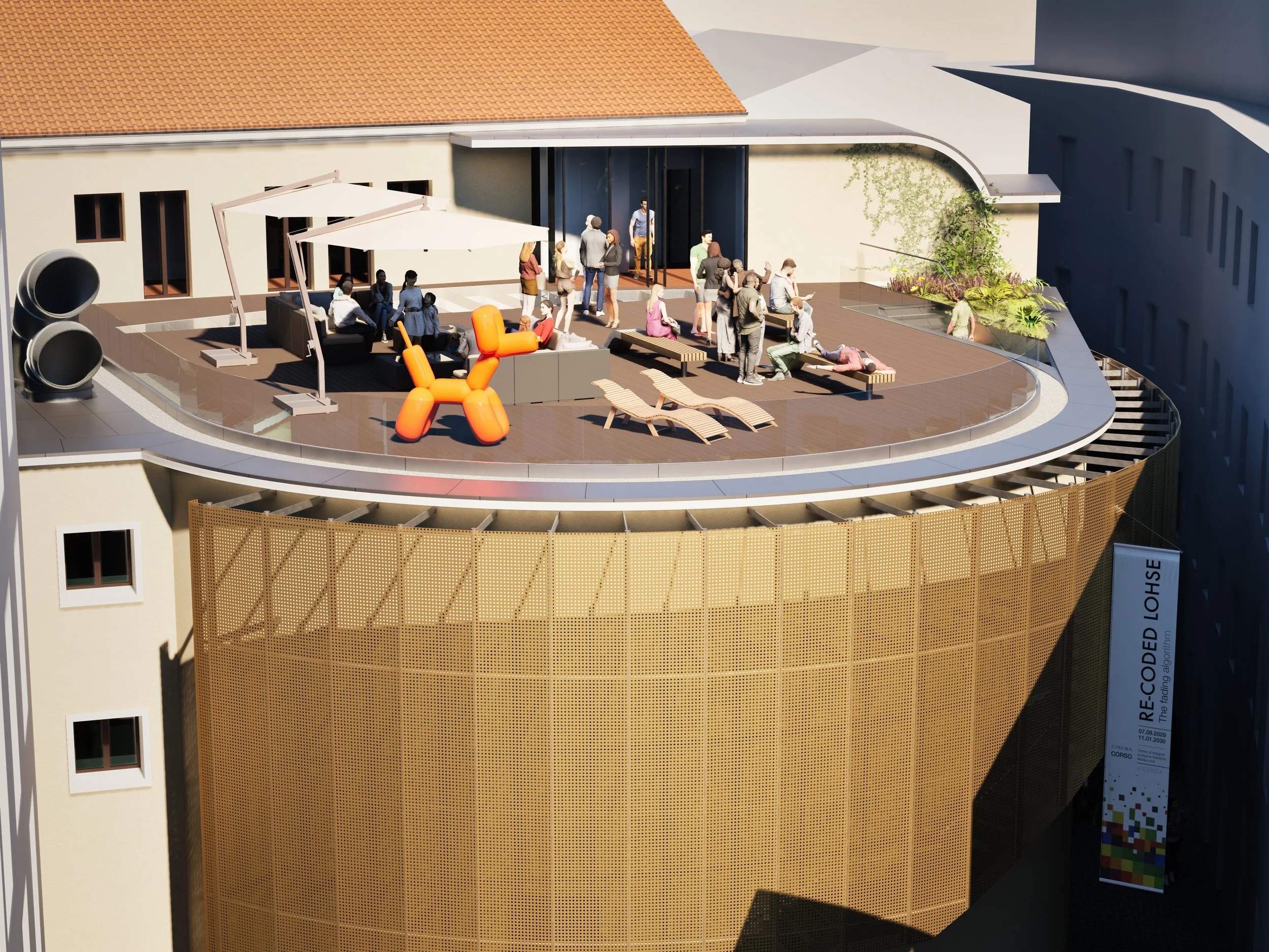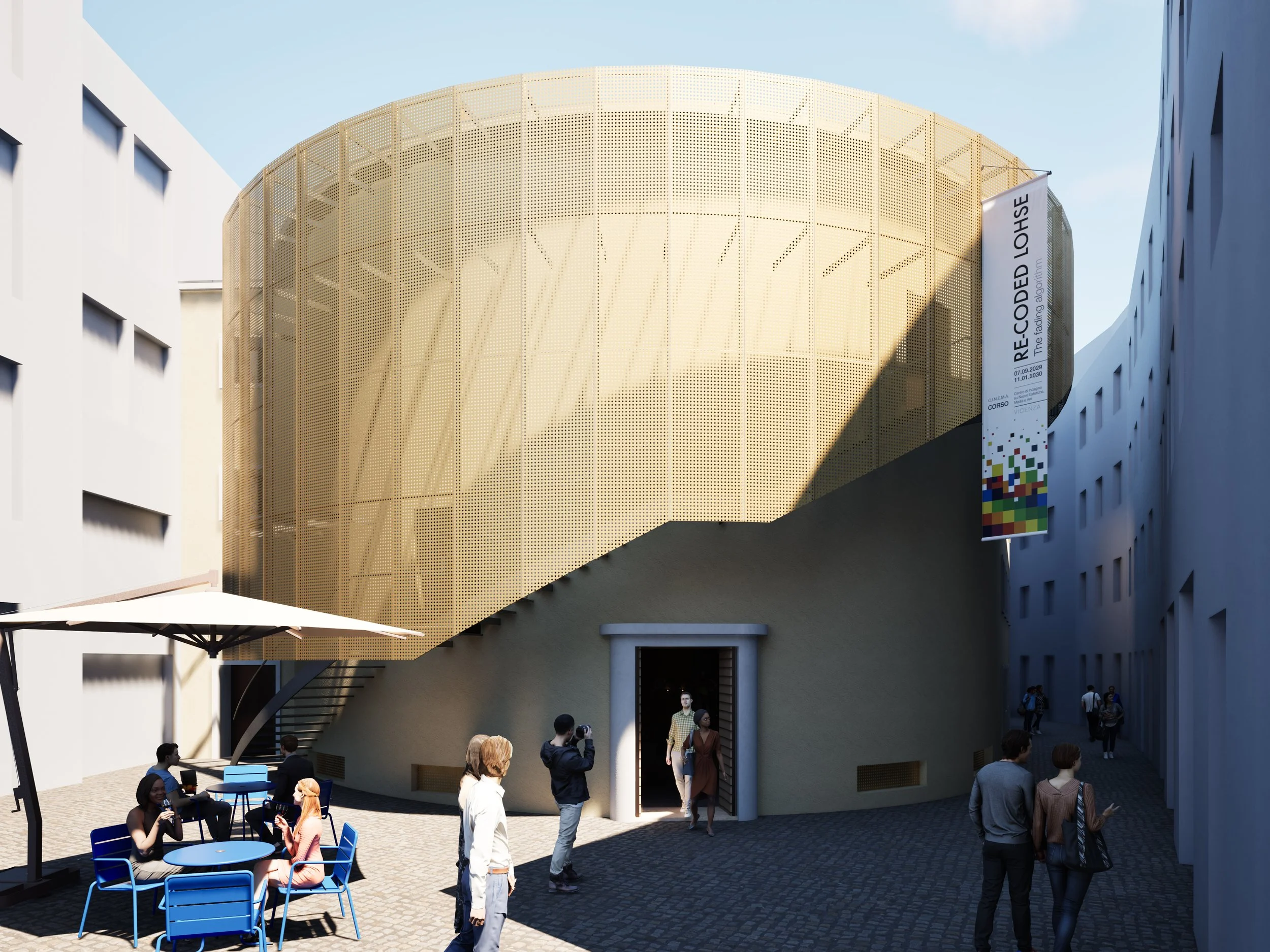 La riqualificazione del vecchio Cinema Corso segna, per la Fondazione Giuseppe Roi, un passaggio decisivo: trasformare un luogo simbolico della città di Vicenza in un centro dedicato alla produzione e alla sperimentazione dell’arte contemporanea. L’intento è quello di restituire alla comunità uno spazio capace di accogliere nuove forme di creatività, mantenendo un legame profondo con l’eredità architettonica dell’edificio e immaginando un ambiente aperto e flessibile che favorisca processi, incontri, contaminazioni: un incubatore culturale in cui produzione, ricerca e formazione possano convivere e alimentarsi reciprocamente, realizzando un nodo attivo all’interno della rete urbana e istituzionale vicentina, capace di dialogare con le realtà culturali esistenti.